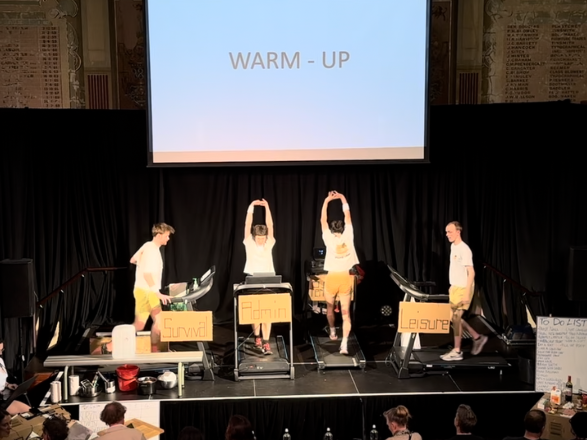 In this Fringe show, four performers are stuck on treadmills racing against the clock to do everything that needs doing—cooking, grant applications, Shakespeare, reading the news, and more.